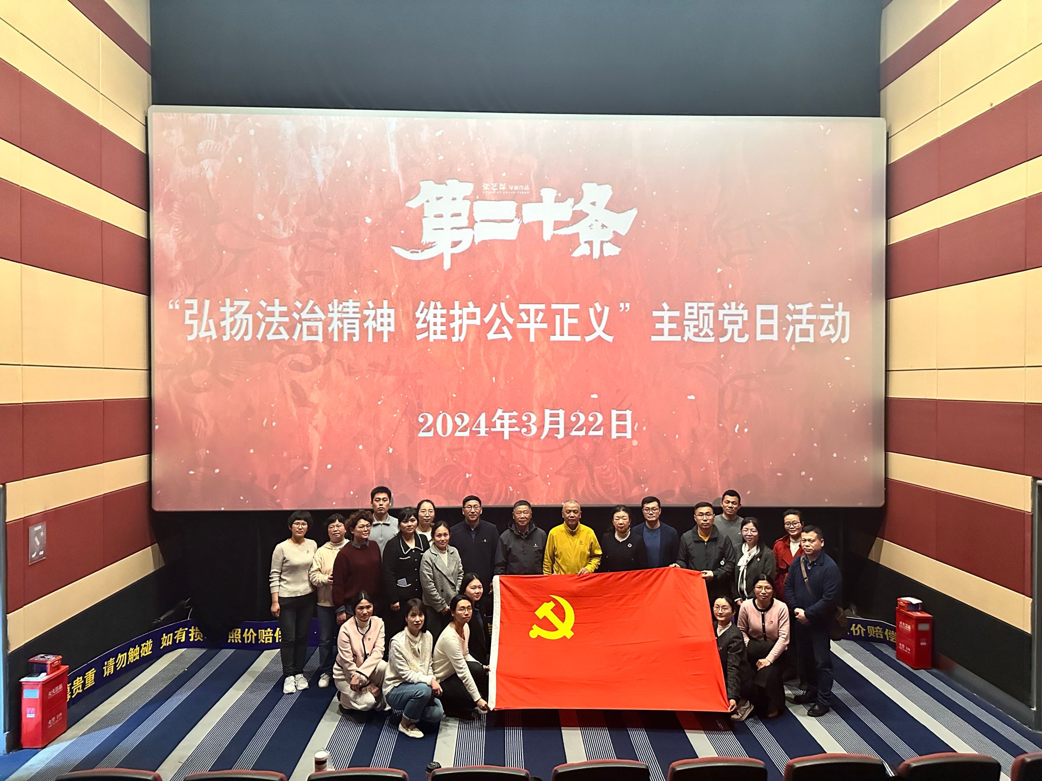3月22日下午,人事处党支部联合党委(院长)办公室(校友办、基金办)、党委组织部开展“弘扬法治精神 维护公平正义”观影主题党日活动,集中观看法治电影《第二十条》。本次活动旨在通过观影,让党员同志更加深入地了解正当防卫的法律规定,增强法律意识,倡导见义勇为,弘扬公平正义,激励党员在工作岗位中勇于担当作为。