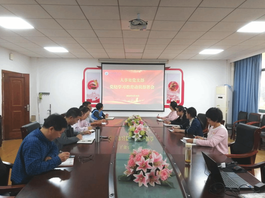 4月16日上午,人事处党支部在行政楼400会议室召开党纪学习教育部署会。