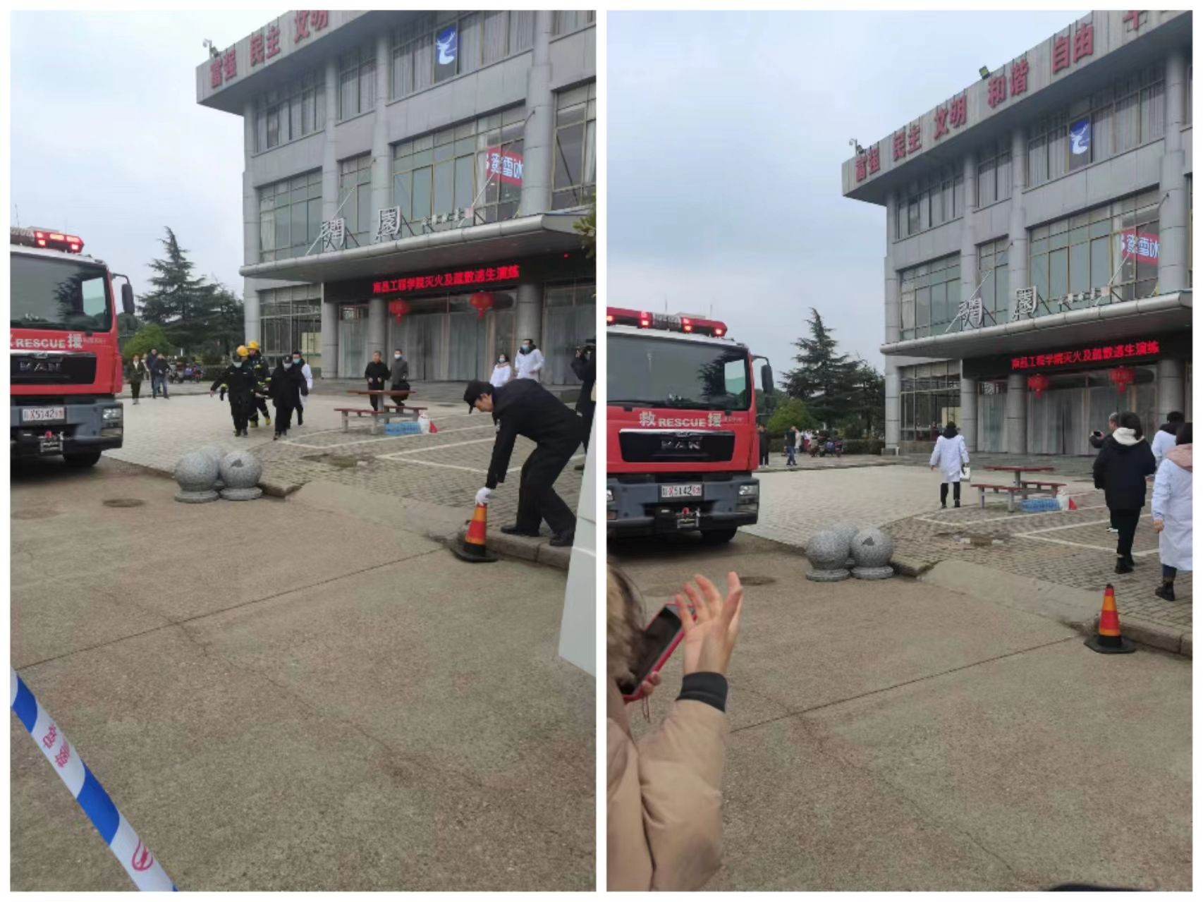 本次演练由高新消防救援大队现场指导,内容包括普及消防安全知识、灭火及应急疏散、联动抢救伤员、参观消防设备、灭火技能培训等。演练现场,设定润园突发“火情”,随着警笛声响起,志愿消防队员、校园110、119消防车、校120救护车相继进入演练现场组织灭火疏散救护。整个演练过程配合默契,火灾现场师生迅速有序疏散撤离、路线清晰,组织有条不紊,演练达到了预期效果。随后,消防员现场普及了高校发生火灾隐患的常见起因以及科学应对处理等消防安全知识,有序引导师生参观消防体验车的救援器材,详细讲解防火设施与装备的使用方法。在消防灭火技能实践操作环节,消防员向现场师生员工详细介绍了灭火器、消火栓的正确使用方法及注意事项,分批次组织现场演练。