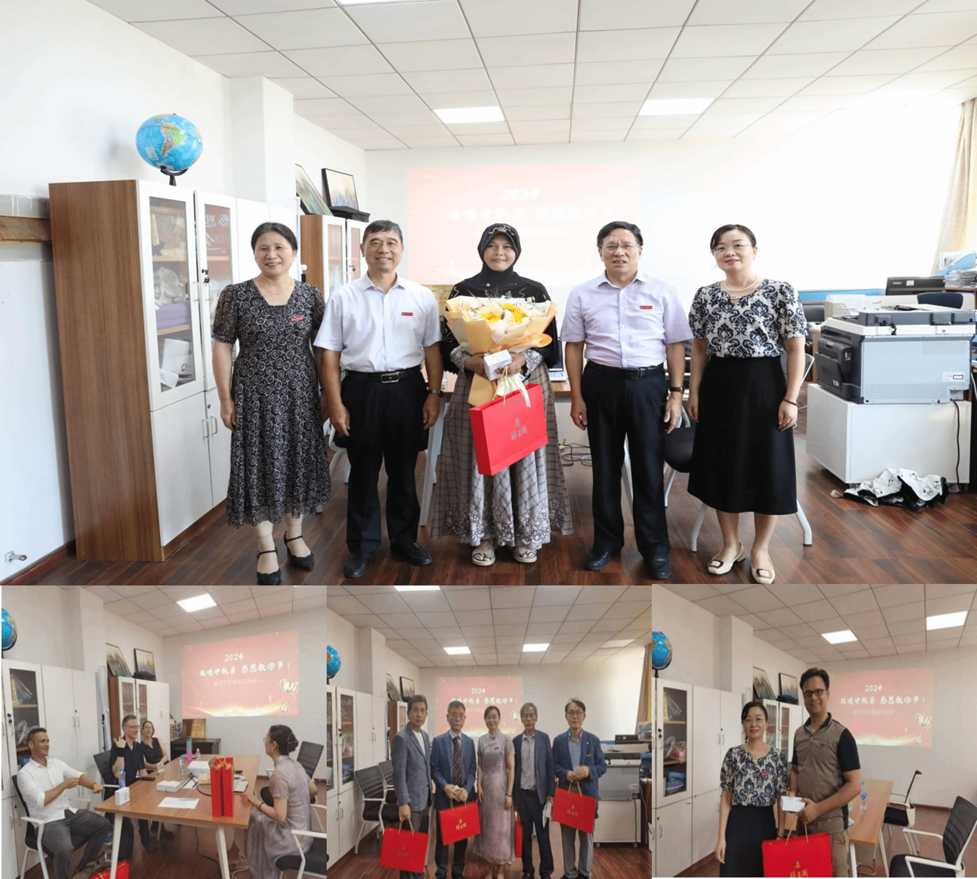 关怀外教架心桥。校党委书记汪胜前、校党委副书记吴泽俊在相关职能部门负责同志陪同下慰问外籍教师ARNIZA FITRI。国际交流与合作处组织“浓情中秋月,感恩教师节”活动,向外籍教师传达节日祝福,介绍中秋文化,促进文化交流与理解。